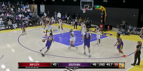 第二節(jié),開節(jié)段楊瀚森內(nèi)線強攻連得7分,幫助混音迅速迫近至2分分差,節(jié)中段楊瀚森短暫下場休息之后再度登場,混音依靠庫克連續(xù)得分與南灣湖人保持拉鋸,節(jié)末段楊瀚森終于得到機會,順下沖框造犯規(guī)兩罰全中,隨后楊瀚森再度連送對手兩帽,可惜最后階段楊瀚森三分不中,半場戰(zhàn)罷,南灣湖人48-43混音。
